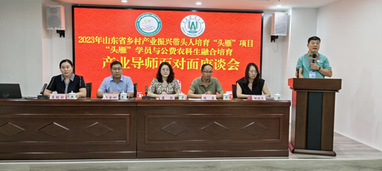 9月7日晚,“2023年山东省乡村振兴带头人培育‘头雁’项目学员与公费农科生融合培育产业导师面对面座谈会”活动在bw必威西汉姆联官方网站博学楼举行,动物科技公司副经理崔凯、资源与环境公司经理助理宗全利、农公司农公司作物栽培与生态学系主任邹晓霞、植物医学公司副教授练森出席活动,“头雁”产业导师和公费农科生参加活动。