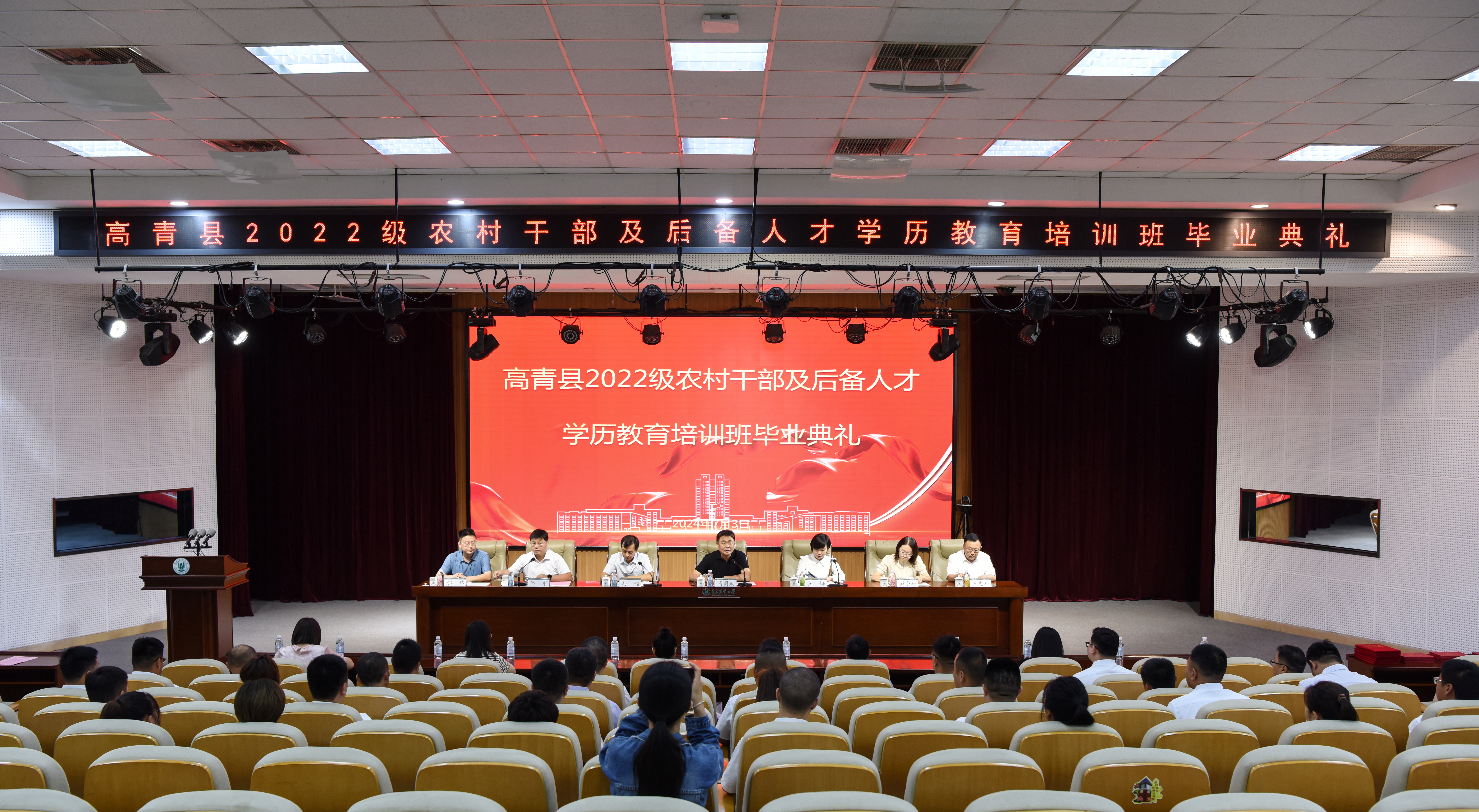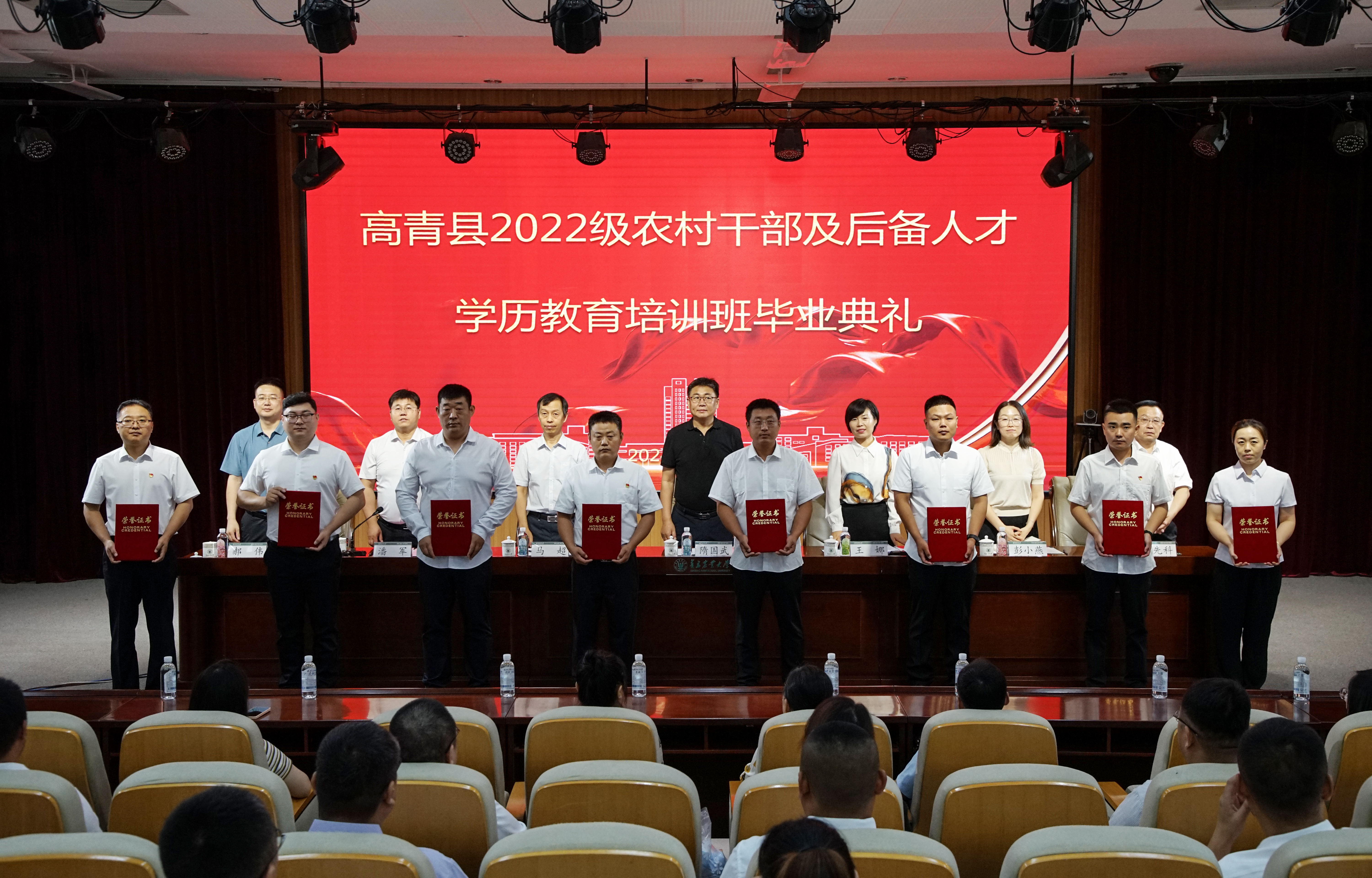 高青县委组织部、党校和bw必威西汉姆联官方网站相关工作人员及高青县2022级农村干部及后备人才学历教育培训班全体毕业生参加毕业典礼。