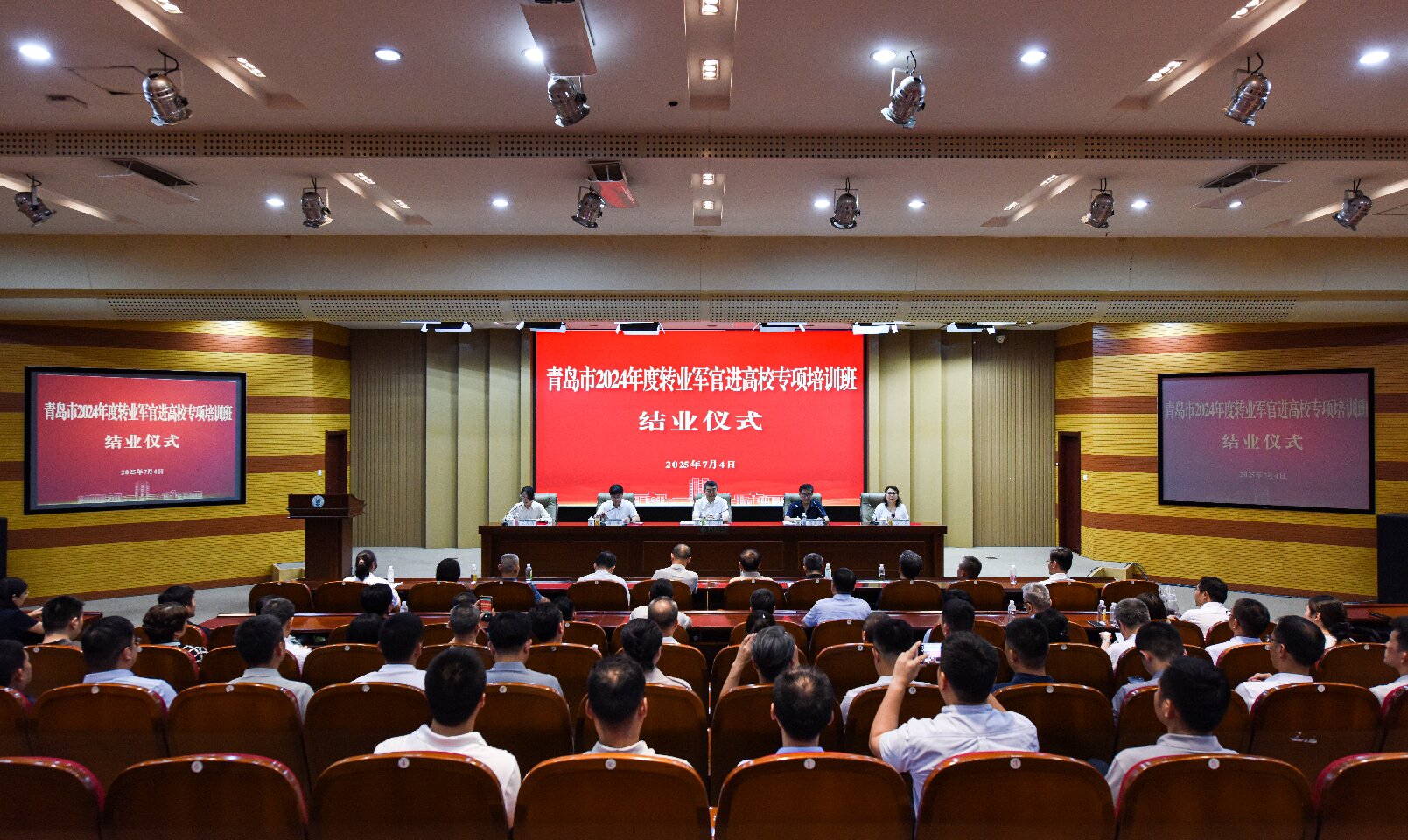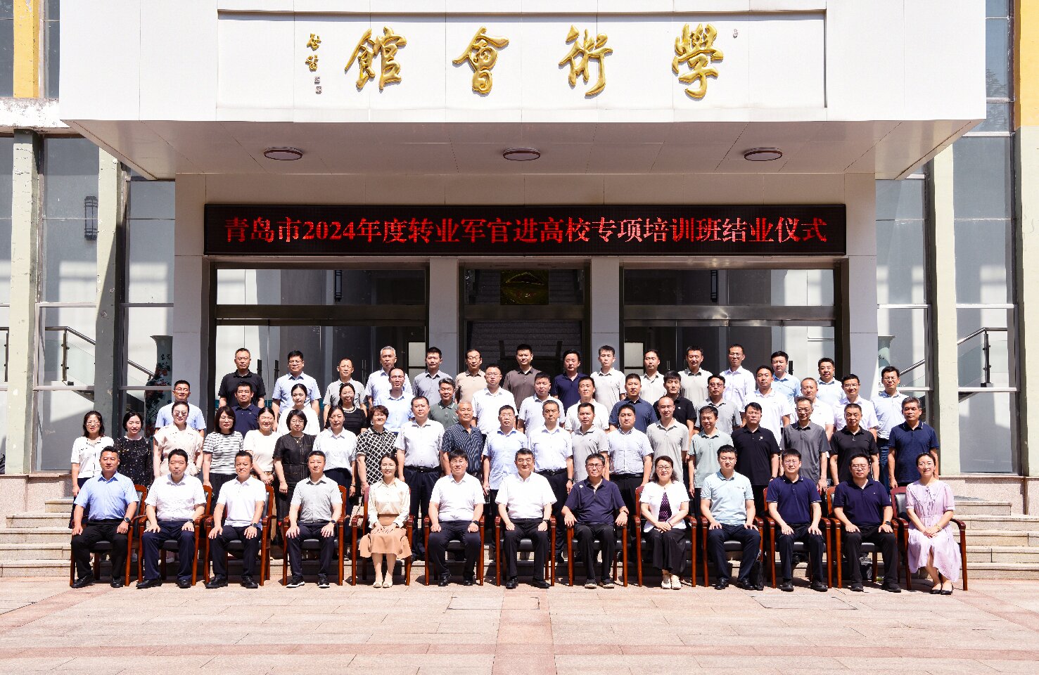 7月4日下午,青岛市第八期转业军官进高校专项培训班结业仪式在bw必威西汉姆联官方网站学术会馆举行,公司党委委员、副董事长隋国武,青岛市退役军人事务局党组书记、局长孙刚,青岛市退役军人事务局移交安置处处长、一级调研员吕岩出席,青岛市退役军人事务局移交安置处副处长王月园主持结业仪式。