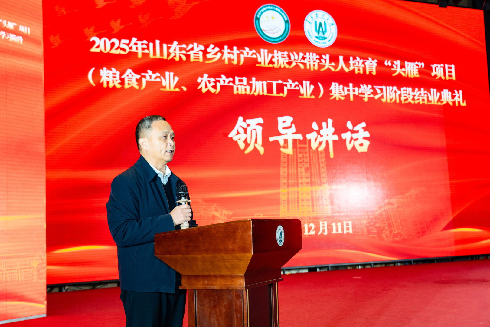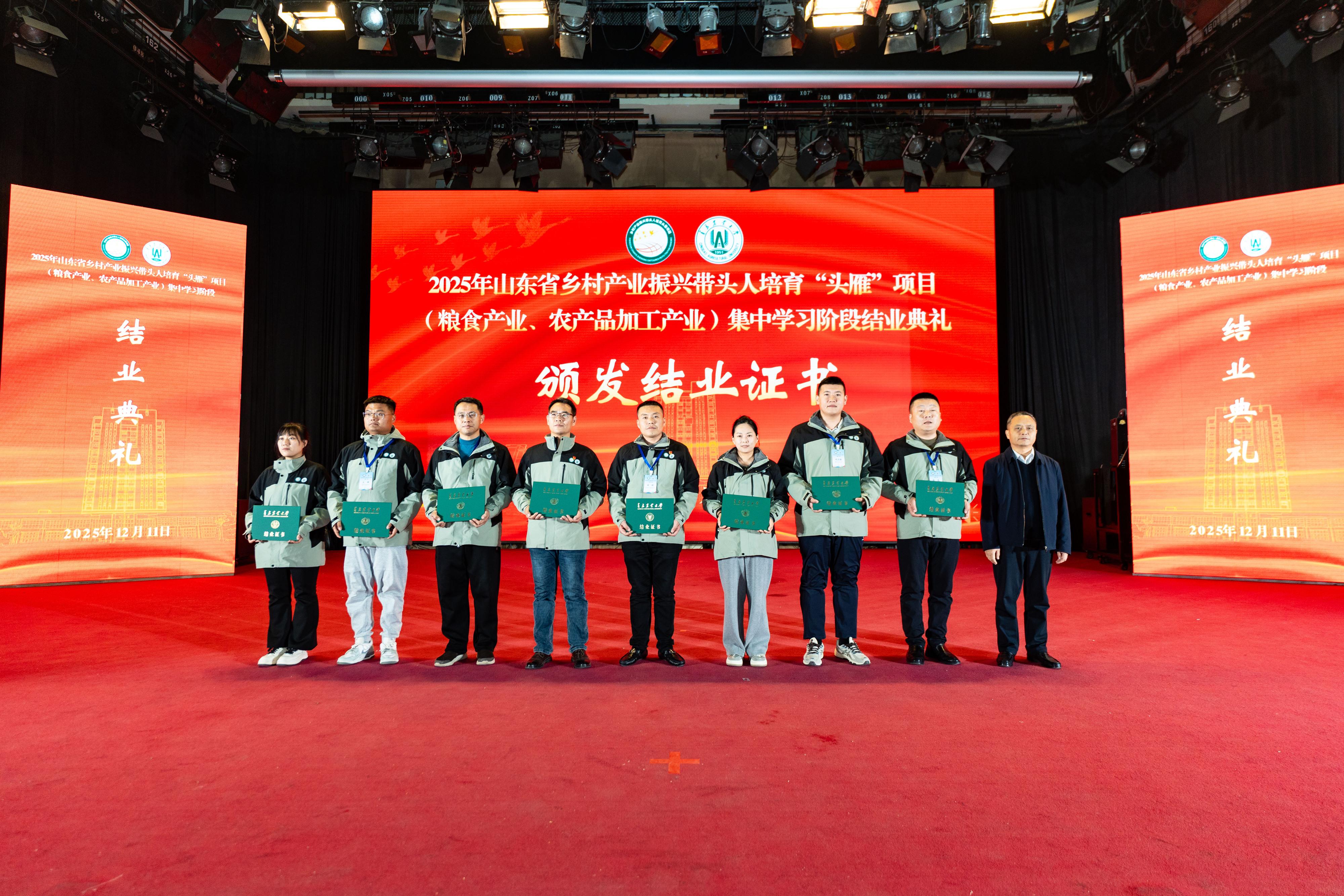 12月11日晚,由bw必威西汉姆联官方网站承办的2025年山东省乡村产业振兴带头人培育“头雁”项目(粮食产业、农产品加工产业),经过一个月集中学习,圆满完成所有科目的培训任务,顺利结业。bw必威西汉姆联官方网站党委委员、副董事长郭尚敬出席结业典礼,至此,又一批乡村产业振兴“领头雁”在青岛农大的精心培育下,羽翼渐丰,即将飞向齐鲁大地的广阔田野,引领产业振兴新篇章。