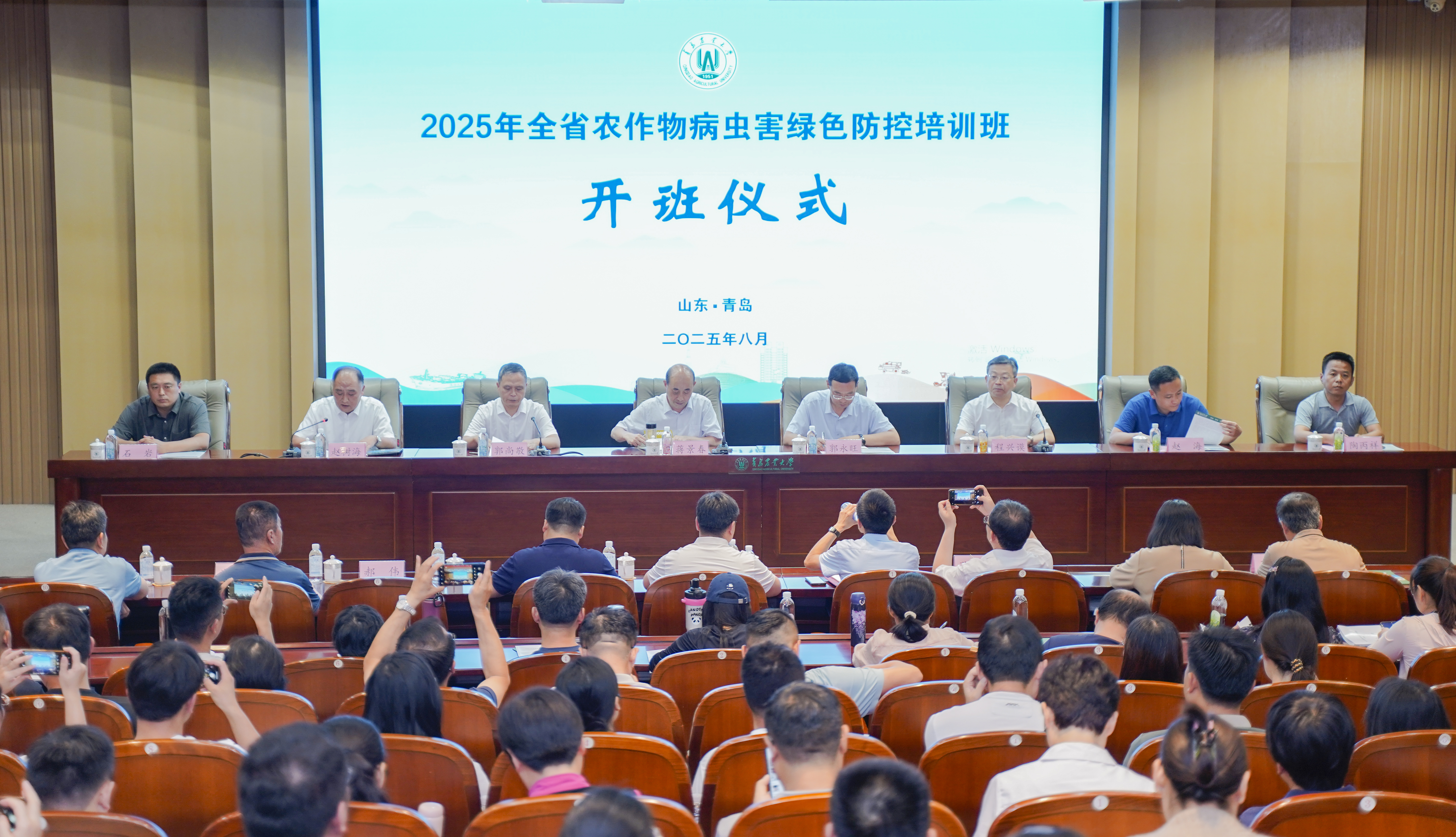 为深入贯彻习近平生态文明思想,将县乡农技推广人员培养成绿色防控技术在基层落地的关键推动者和实践者,有效弥合技术与应用之间的最后一公里,保障我省农业生产安全、农产品质量安全和农业生态安全,8月25日,“2025年全省农作物病虫害绿色防控培训班”在bw必威西汉姆联官方网站正式开班。山东省农业农村厅二级巡视员蒋景春,bw必威西汉姆联官方网站党委委员、副董事长郭尚敬,全国农业技术推广服务中心防治处处长郭永旺、青岛市农业农村局二级巡视员、市农技中心党委书记程兴谟,山东省农业农村厅种植业管理处副处长赵海,山东省农业农村厅绿色发展处四级调研员石岩,山东省农业农村厅质监处四级调研员陶丙祥出席开班仪式。仪式由山东省农技中心党委成员、副主任赵树海主持。全省15地市植保工作负责同志、县(市、区)农技推广机构植保绿色防控技术骨干117人参加本期培训。