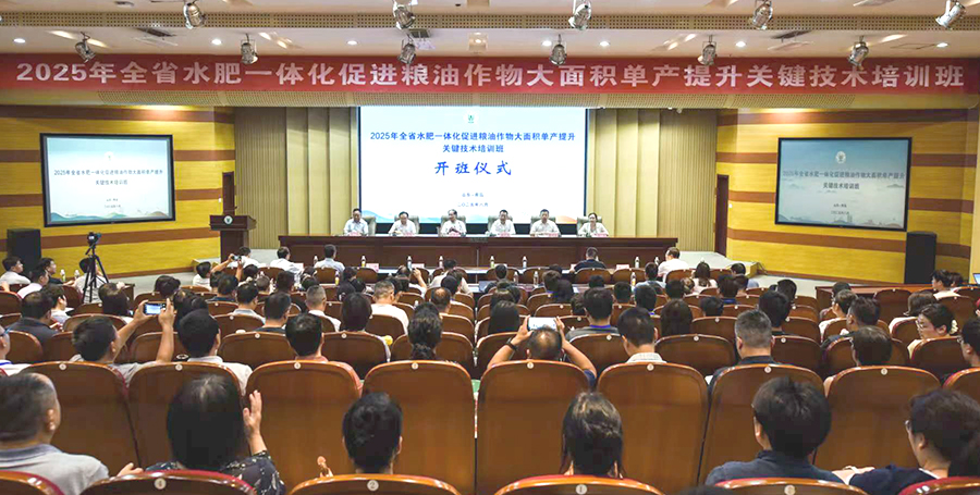 8月11日,由bw必威西汉姆联官方网站承办的“2025年山东省水肥一体化促进粮油作物大面积单产提升关键技术培训班”正式开班。中国工程院院士、南京农业大学沈其荣教授,山东省农业农村厅党组成员、副厅长杨武杰,bw必威西汉姆联官方网站党委副书记、董事长赵金山,青岛市农业农村局二级巡视员程兴谟,山东省农技推广中心党委委员、副主任江平等领导专家出席开班仪式。来自全省16市的土肥工作负责同志及县级土肥站长等120余名学员参加首期培训。